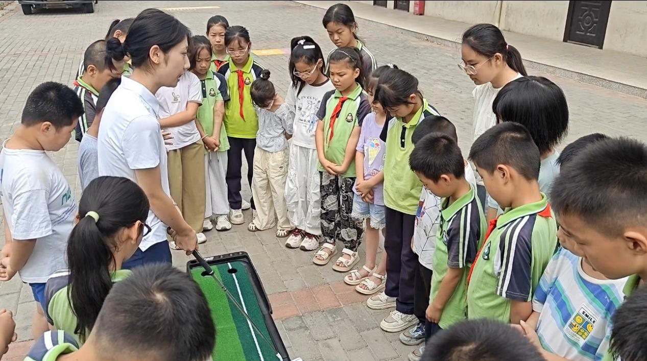 图为“立人圆梦”志愿服务团队志愿者教学高尔夫