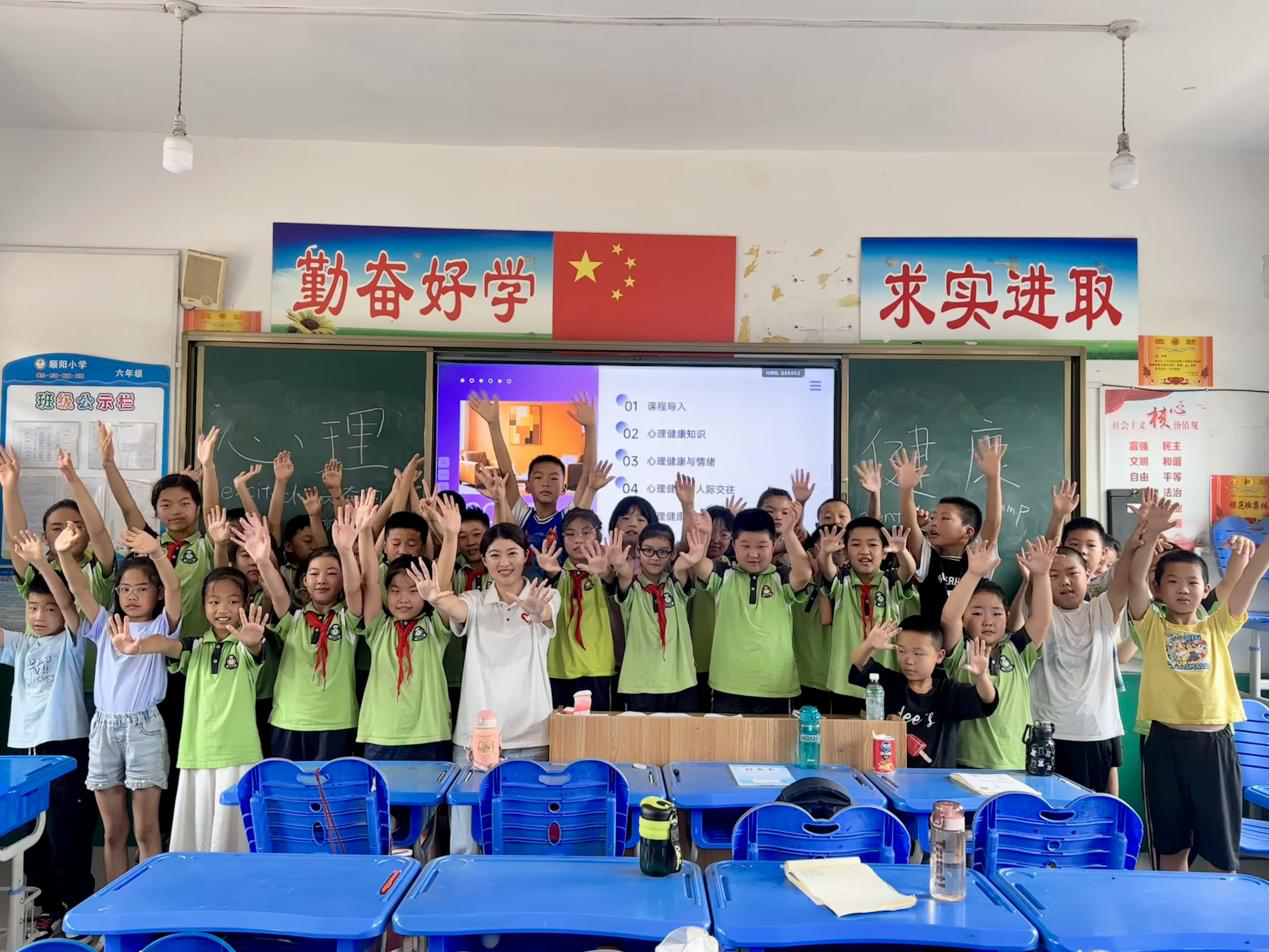 图为“立人圆梦”志愿服务团队志愿者在陕西富平顺阳小学讲授心理健康