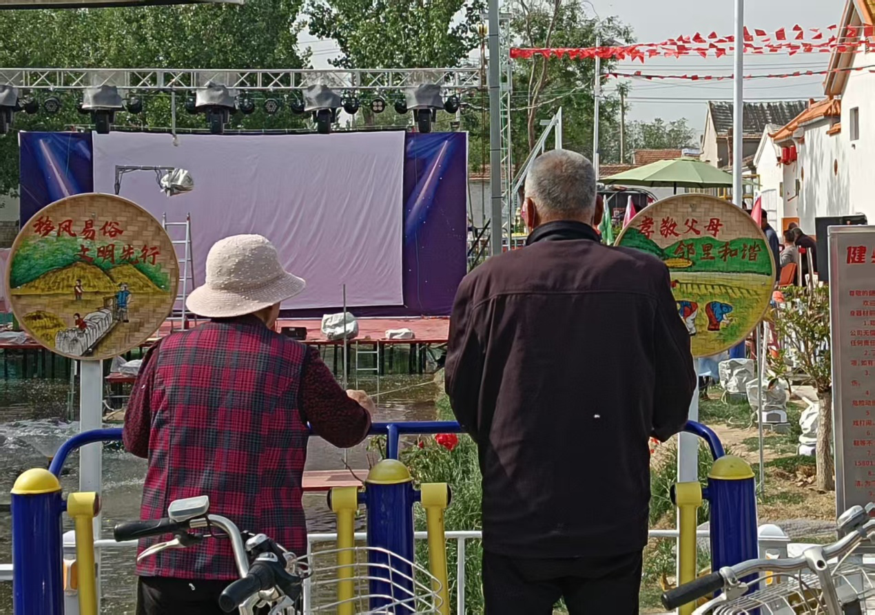 合林村地处呼和浩特城郊,距市区不远,交通便利却保留着浓郁乡土气息。踏入村庄,青灰色的老式民居与崭新的乡村文化广场形成视觉对话。广场边,“移风易俗、敬父母、邻里和谐、文明先行”的红色标语格外醒目,几位老人正围着健身器材闲聊,金属器械碰撞声混着笑声,成了乡村清晨最鲜活的背景音。